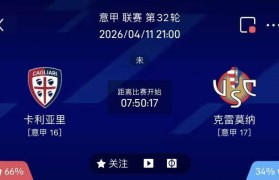 周六011意甲联赛:卡利亚里VS克雷莫纳比赛时间:2026-04-1121:00【卡利亚里】当前在意...