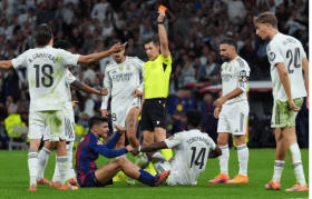 当补时第10分钟佩德里的第二张黄牌划破伯纳乌的夜空,当亚马尔与维尼修斯的争执被队友强行拉开,当终场哨...
